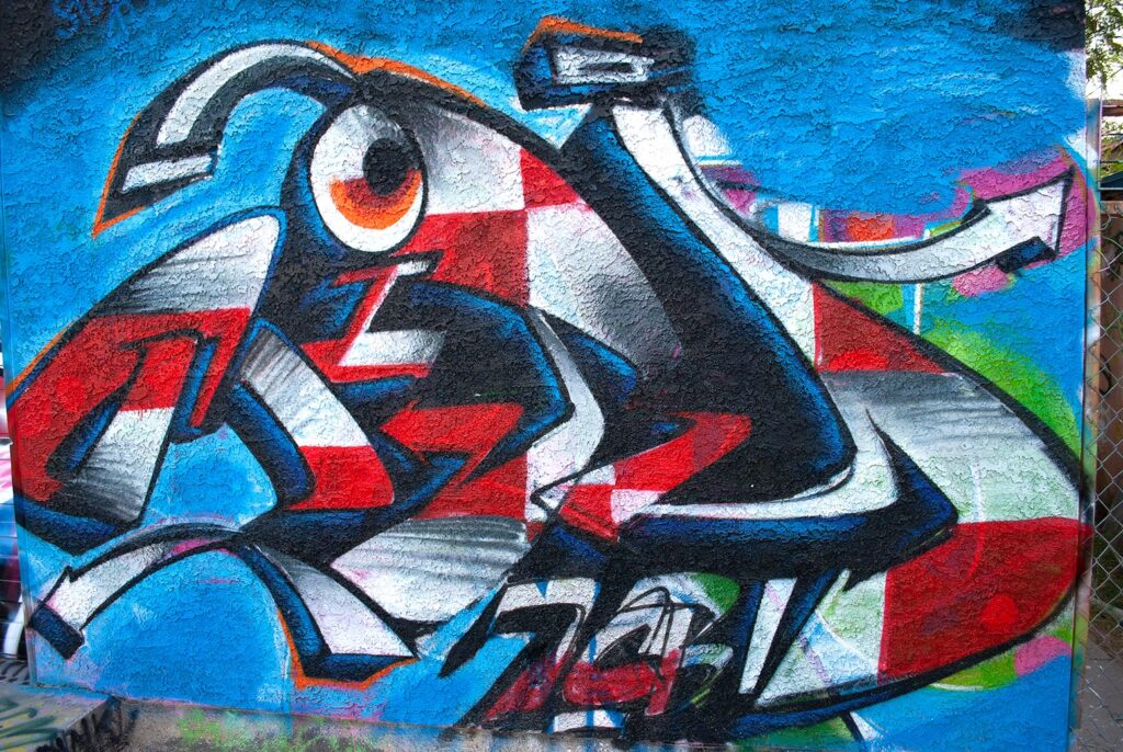 A better look at the mural on the right side of the building,